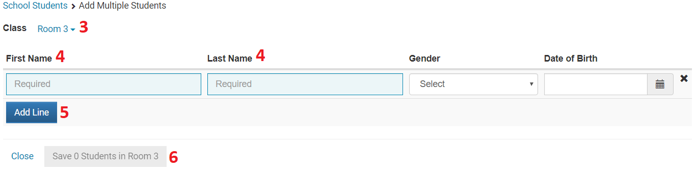 4. Add the student's First Name, Middle Name, Last Name, Gender and Date of Birth. First Name and Last Name are the minimum required.