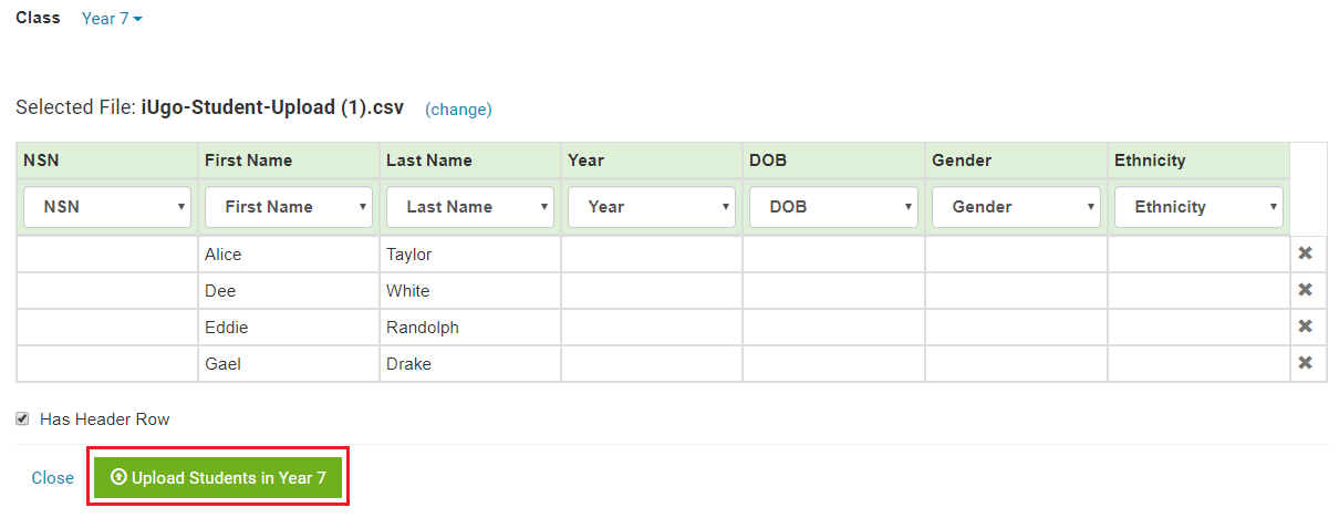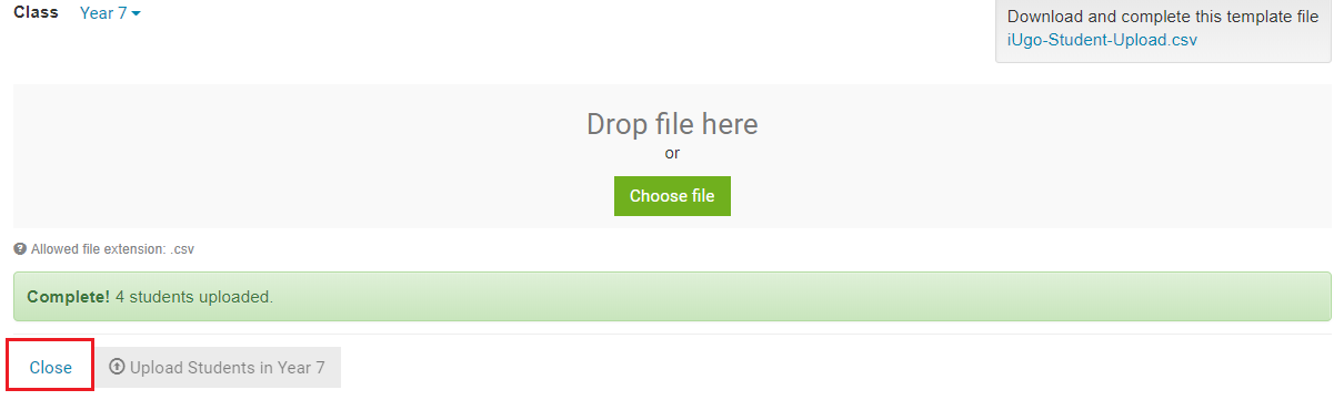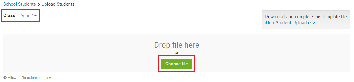 5. Click Choose file and double click on the class csv list you have saved to your computer. (Alternatively you can drag and drop this class csv list into the Upload Student List pop-up box.)