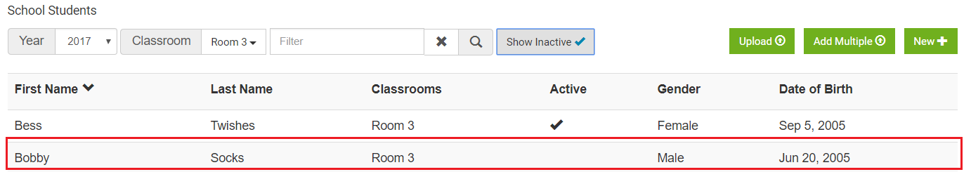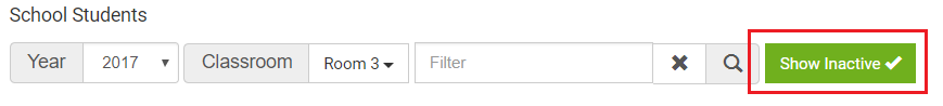 4. If you make your student inactive it will take you back to the classroom list where you will no longer see this student. If you would like this student to appear back in the list then click on the green button Show Inactive.