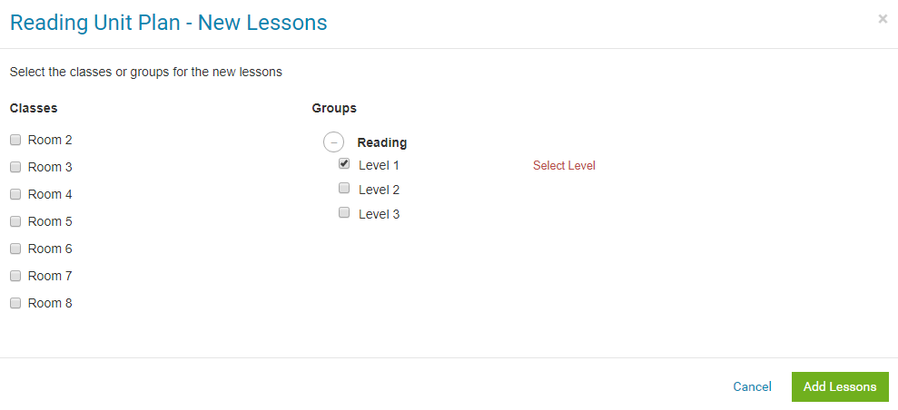 4. Tick the boxes for your other groups or classes if you wish to create a new lesson for each of them. When you are finished click