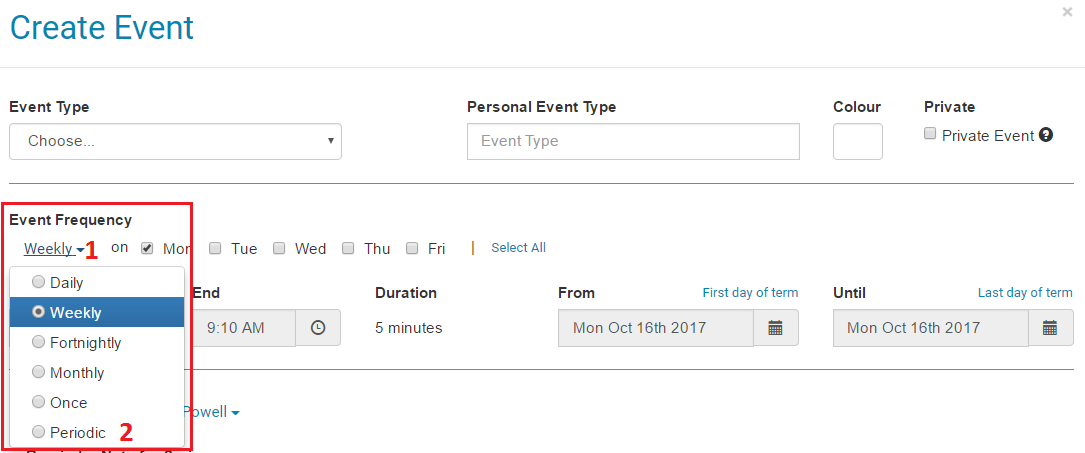 Step 3. Once you have clicked on Periodic it will then change the layout of the Create Event window.