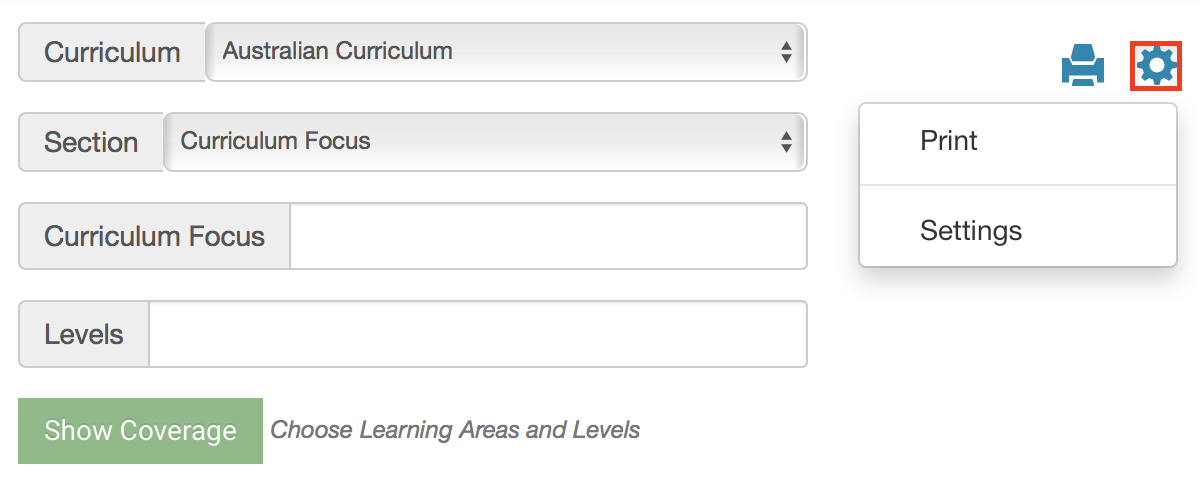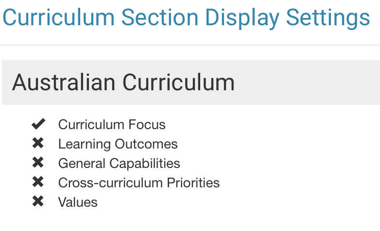 The default setting in iUgo displays Curriculum Focus and General Capabilities in your Curriculum Coverage. You can amend these settings using the following process: