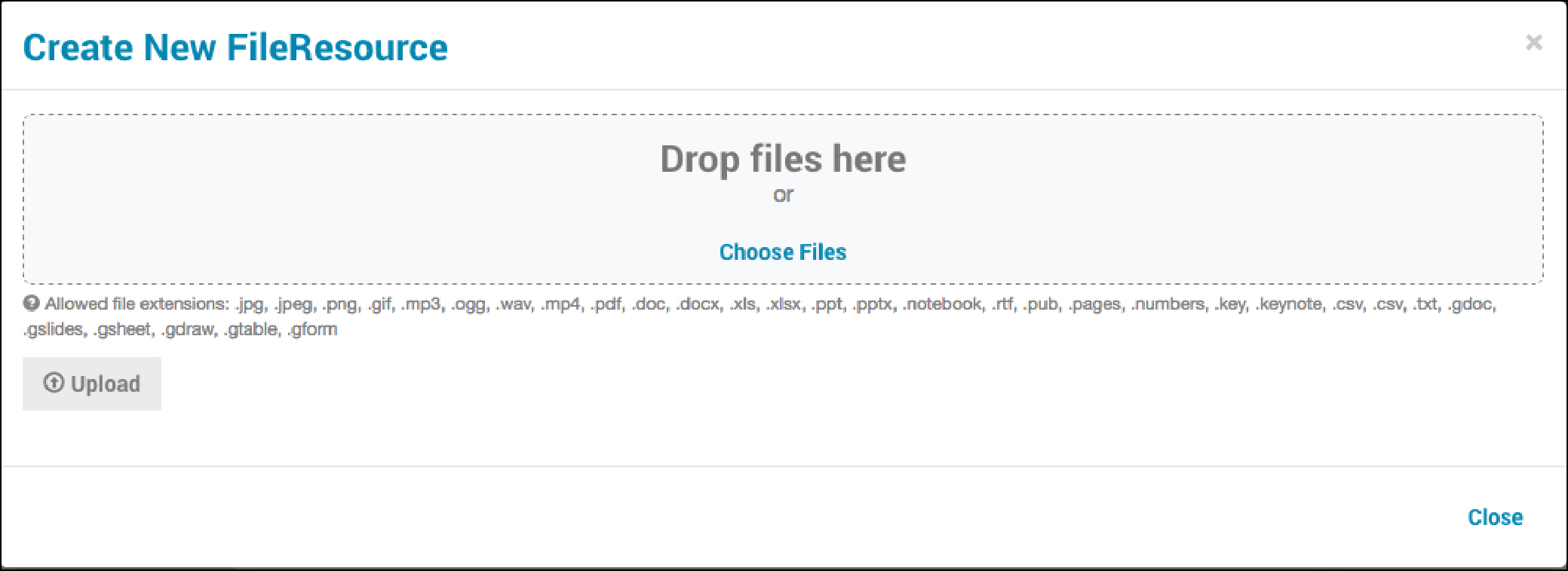 - Click Choose Files and find each resources you wish to upload from your device or network.