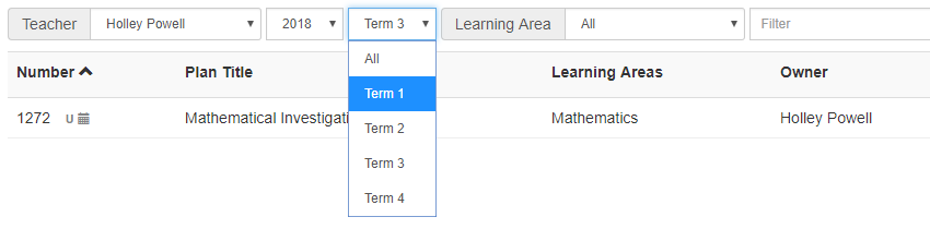 Step 3. iUgo always displays planning for the current date and term. If you wish to review planning in previous terms or years, click on the date filters.
