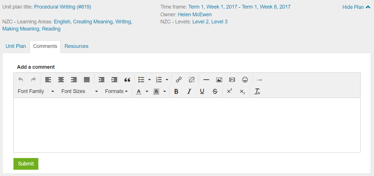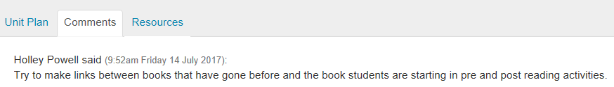4. In the Unit Plan you will see there is a section called Comments. Click on this to open a different section of the Unit Plan.