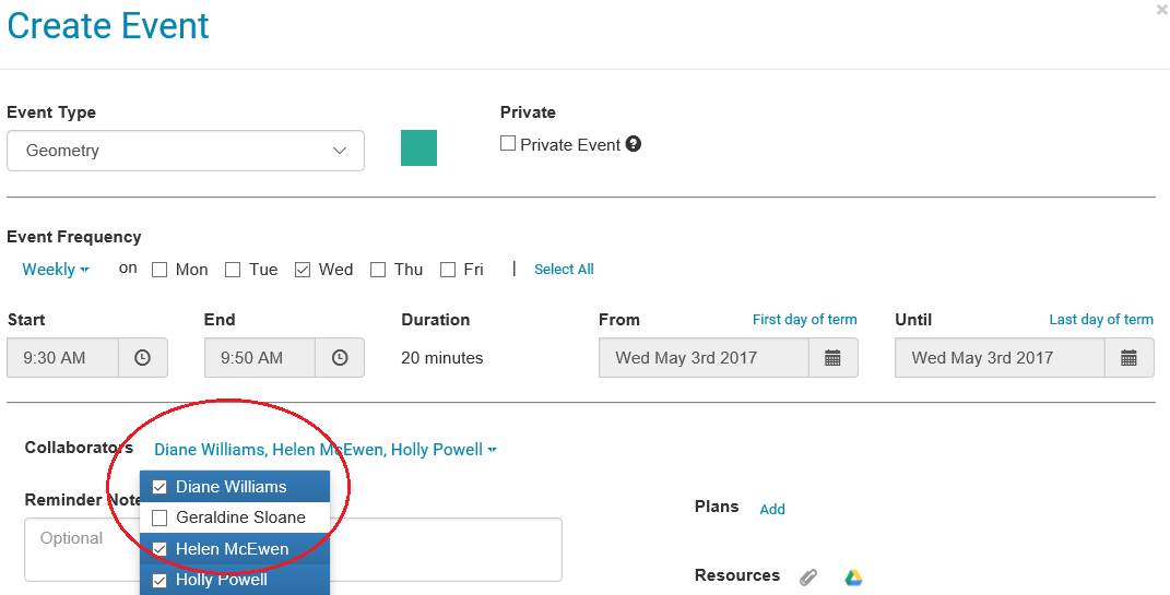 Now when you create a new Plan, Weekly Event, or Long Term Plan; Teaching Group members will automatically be ticked.