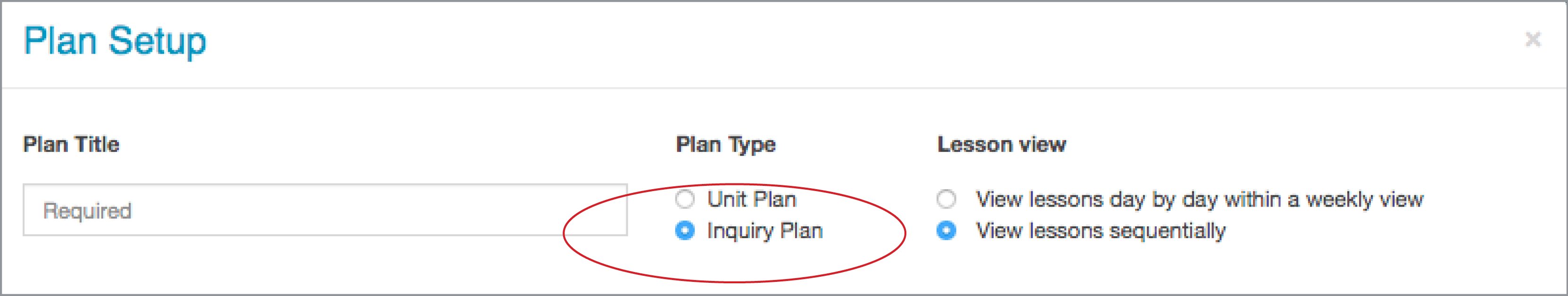 To use the Inquiry Plan template click on Inquiry Plan type during your plan set up.