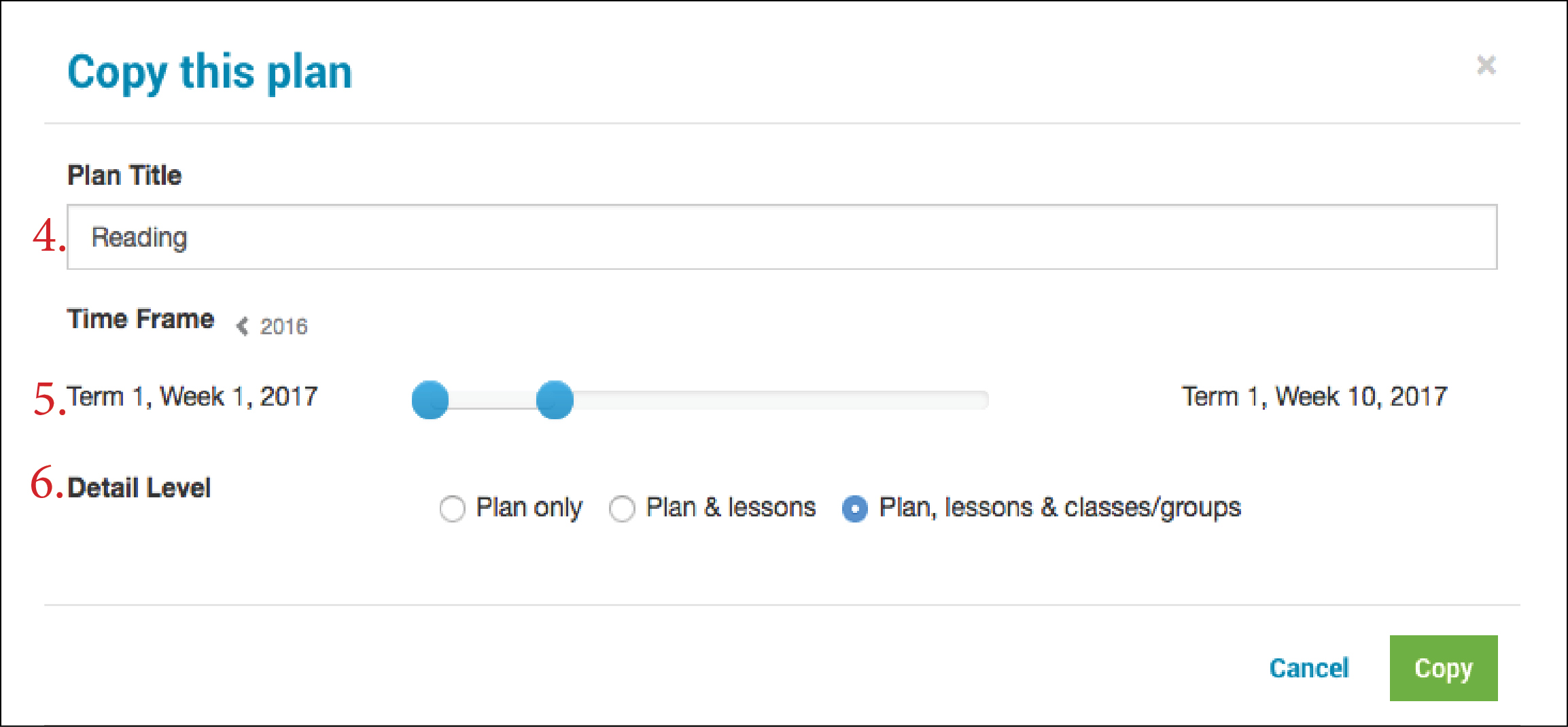- Choose if you would like to copy the Plan, the Plan and Lessons or the Plan, Lessons and Groups.