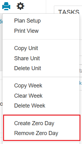 2. Click on the cog icon at the top right hand corner of your unit plan.