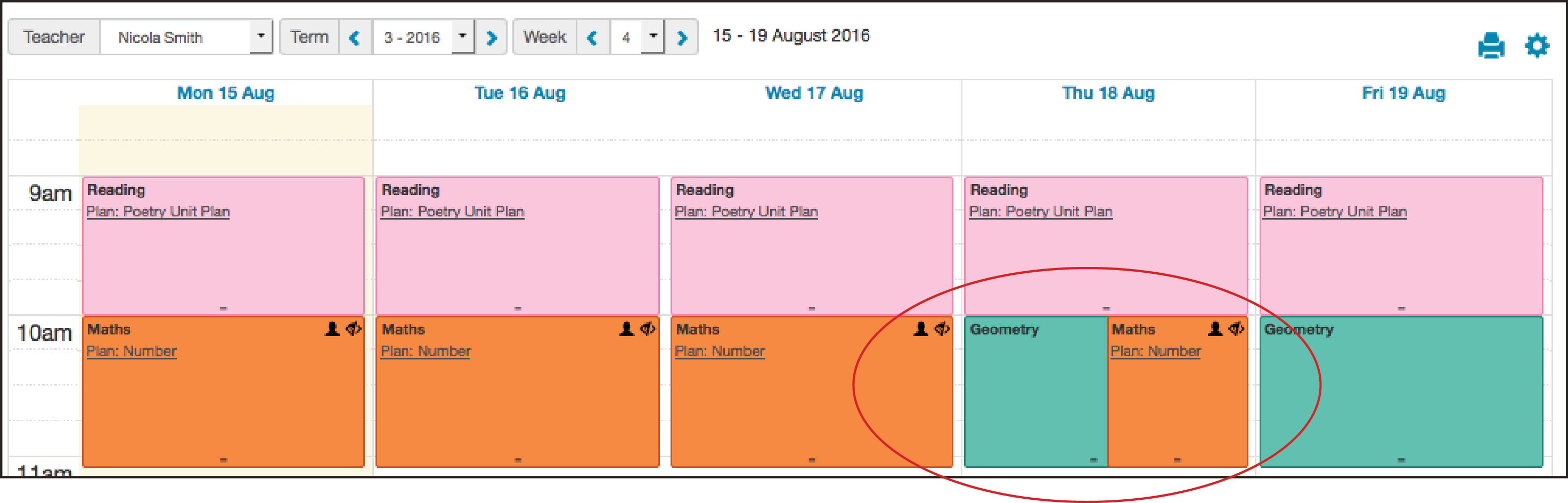 Use the same process as you would to set up a single event. The two events will split over the time frame on your Weekly Planner.