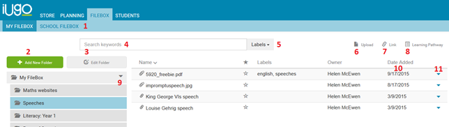 1. Store resources in your own personal Filebox or the School Filebox. The School Filebox allows resources to be uploaded, stored and shared across all iUgo users in a school