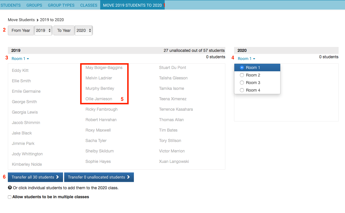 At the end of each year iUgo displays an End of Year Wizard in your dashboard. Follow the steps to check your term dates, classes and move students into new classes.